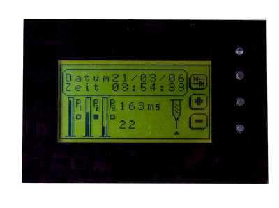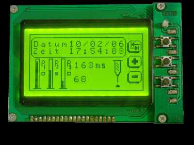 Das Mikrodosiergerät benötigt nur sehr wenig Luft, ich habe die Luft in einer 10L Stahlflasche gespeichert, sie wurde mit einem Kompressor mit 8bar gefüllt. 10L x 8bar = 80Liter Luft, eine ganze menge. Das heist unser Dispenser benötigt keinen laufenden und ratternden Kompressor, und wir haben die ruhe die wir brauchen um die kleinen Klekse zu dosieren. Die Elektronik besteht aus einem 7-9V Steckernetzteil, die Spannung für die Steuerung wird mit einem A7805 bereitgestellt und die 24V für das Magnetventil wird mit einem Schaltnetzteil mit IC34063 erzeugt. Ein Leistungstransistor verstärkt den Ausgang vom Microcontroller zum Schalten des Magnetventils, welches ca.0,8W hat, hier fließt ein Strom von weniger als 40mA. Die Steuerung des Dosiergerätes kann drei unterschiedlich lange Impulse erzeugen, für kleine, mittlere und große Pads. Mit der Tab-Taste kann zwischen P1,P2,P3 gewählt werden, parallel dazu gibt es den esten Fußtaster. Mit + - kann der jeweilige Puls eingestellt werden . Der zweite Fußtaster steuert die Impulsauslösung. Ein Zähler kann hier noch die Dosierimpulse zählen. Die Pneumatik aufzubauen ist recht einfach, angefangen bei der Druckflasche, die in der Flasche befindliche Luft ist abgestanden und sauber das ist sehr wichtig, wenn wir die Luft dierekt vom Kompressor beziehen enthält sie meistens Staub Öl Wasser und genau das könnte später dazu führen das das Magnetventil vorzeitig altert. Wenn wir die Luft vom Kompressor beziehen müste zuerst eine extra Filtereinheit eingebaut werden die sollte der Kompressor schon besitzen. Als nächstes geht die Luft durch die Wartungeinheit mit Druckminderer und Manometer an ihr wird der Arbgeitsdruck eingestellt, der liegt zwischen 1-4bar. Von da gehts zum Magnetventil in den Anschluß (P) der Ausgang ist mit (A) bezeichnet den Anschluß (R) für Entlüftung können wir wahlweise dichtmachen oder nicht. Von (A) gehts zum Kartuschenadapter der dann wiederum an die Kartusche gesteckt wird. Das ganze System das ich anbiete ist ein Stecksystem das heist wir benötigen keine Schellen oder ähnlich umstänliche Verbindungen. Besondere Anforderungen an das Magnetventil die Luftmenge ist eher unerheblich aber die Schaltzeit sollte schnell sein. Der Druckregler sollte einen Kondensatablass und einen Filter haben um das Magnetventil zu schützen, auch finden wir den Regler oft bei anderen Geräten im Gehäuse eingebaut liegend. Die Geräte sehen dann sehr flach aus, aber kann die Wartungseinheit so funktionieren ?, kann der Regler kontrolliert werden ? | ||||||||||||||||||||||||||||||||||||||||||||||||||||||||||||||||||||||||||||||||||||||||||