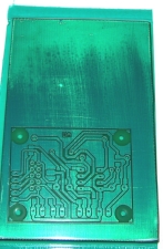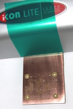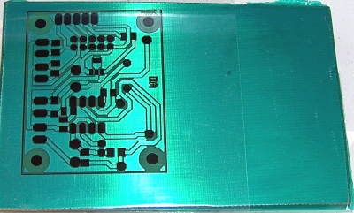 Nach dem belichten und Entwickeln haben wir die fertige Lötstopmaske. Anschliessend die gesamte Platine mit UV bestrahlen (härten) und danach 1,5h bei 130°C Tempern. | |||||||||||||||||||||||||||||||||||||||||||||||||||||||||||||||||||||||||||||||||||||||||